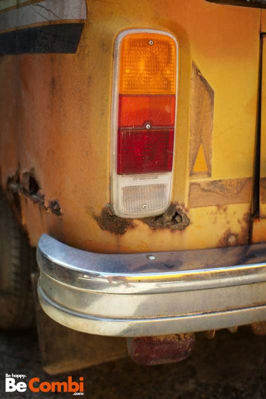 Un bon nettoyage complet intérieur et extérieur permettra de mieux déterminer l’état exact de Baudouin, mais on peut déjà affirmer qu’un Combi qui reste stationné plus de 15 ans sans bouger, à l’extérieur (même dans une région au climat favorable), n’en ressort pas indemne ! On s’en serait douté ! :-)