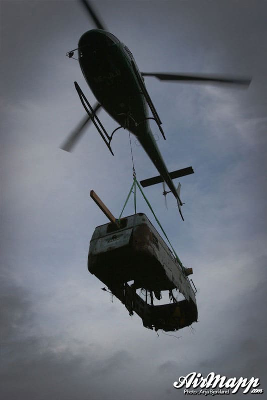 Le lendemain de leur arrivée, il est venu voir sur place ou en était le sauvetage et n’en est pas revenu lorsque Florian lui a répondu : « On remballe, on a fini, l’hélico arrive dans 1 heure ! ». Au même moment, une journaliste locale qui savait que le sauvetage aurait lieu cette semaine, arrive, elle aussi surprise et n’en croyant pas ses oreilles (au sujet de l’hélico). Elle a donc assisté une heure plus tard au levage du combi et a écrit un article qui paraitra dans un magazine suédois le mois prochain… Florian lui doit d’ailleurs la plupart des photos du levage, puisqu’il était alors bien trop occupé pour en prendre !