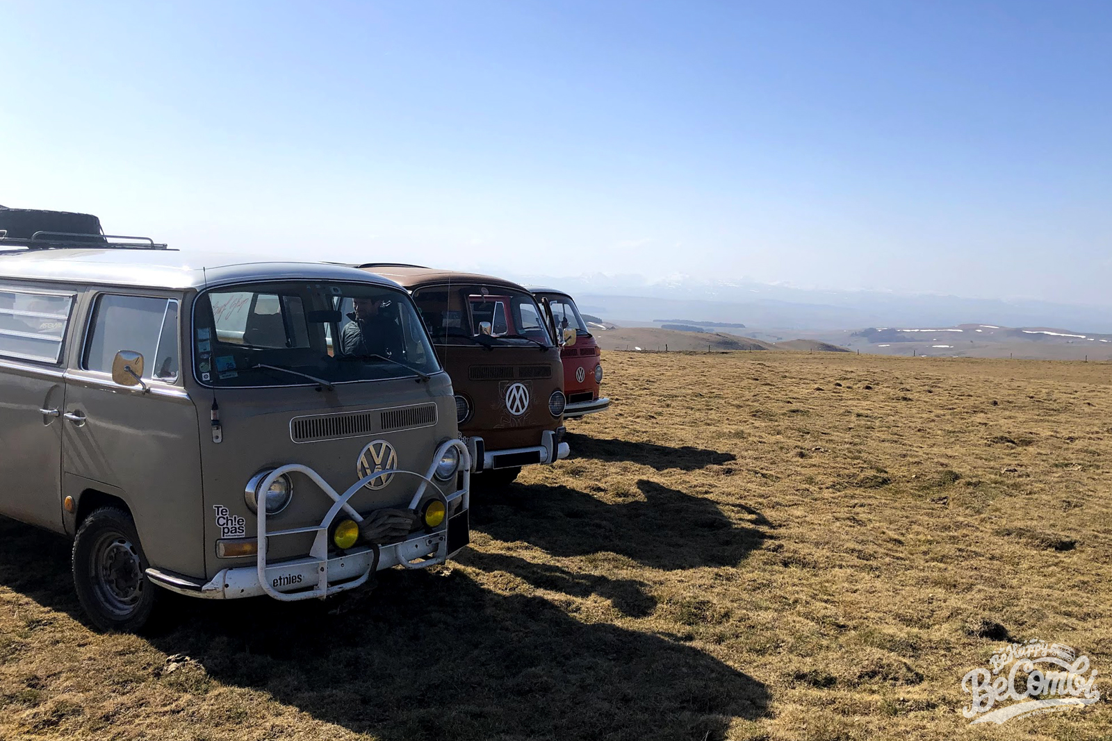 Pas facile avec la situation sanitaire actuelle de pouvoir profiter pleinement de nos Combis. On se retrouve à rêver d’escapade dans la nature, loin de tout, au calme, juste entre amis… Puis sur un coup de tête, via nos groupes de conversation, nous nous mettons d’accord : Direction l’Auvergne, à la recherche de Saint Nectaire (que nous n’arriverons pas à trouver, toutes les fermes étant en rupture !), d’Aligot et de neige !